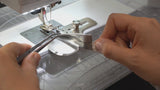 Il bordatore si posiziona vicino al piedino e si utilizza con il piedino standard della macchina da cucire.