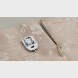 Il piedino per cerniere invisibili Brother consente di installare cerniere invisibili in modo semplice e veloce, senza l’uso del ferro da stiro o delle imbastiture. Basta sollevare le spirali della cerniera con le dita e allinearle con la scanalatura del piedino. La guida anteriore del piedino mantiene saldamente la cerniera in posizione durante la cucitura.
